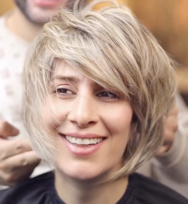 Sitting in the salon chair, she admitted she was tired of covering and blending. She wanted something bold. Something fresh. After a detailed consultation, the plan was set: a major haircut and a full transition to blonde.